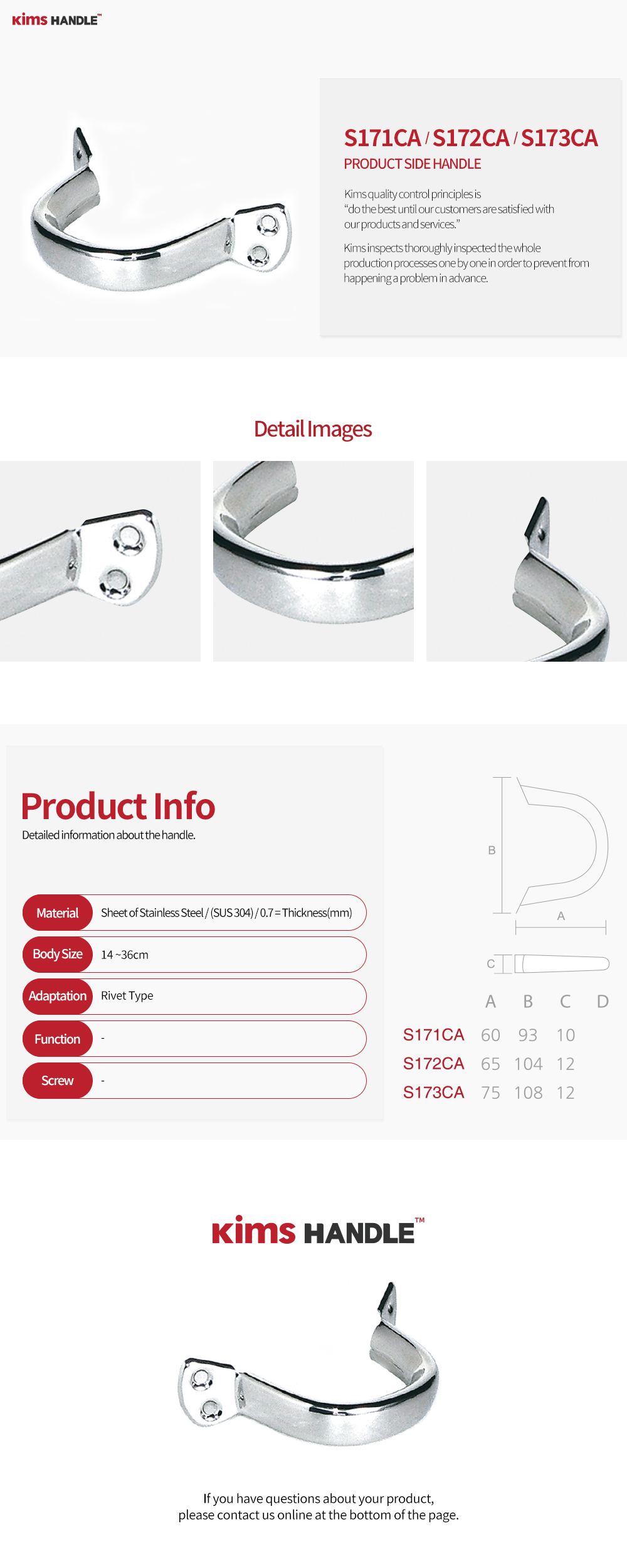 S171CA - (A) : 60 x (B) : 93 x (C) : 10 / S172CA - (A) : 65 x (B) : 104 x (C) : 12 / S173CA - (A) : 75 x (B) : 108 x (C) : 12