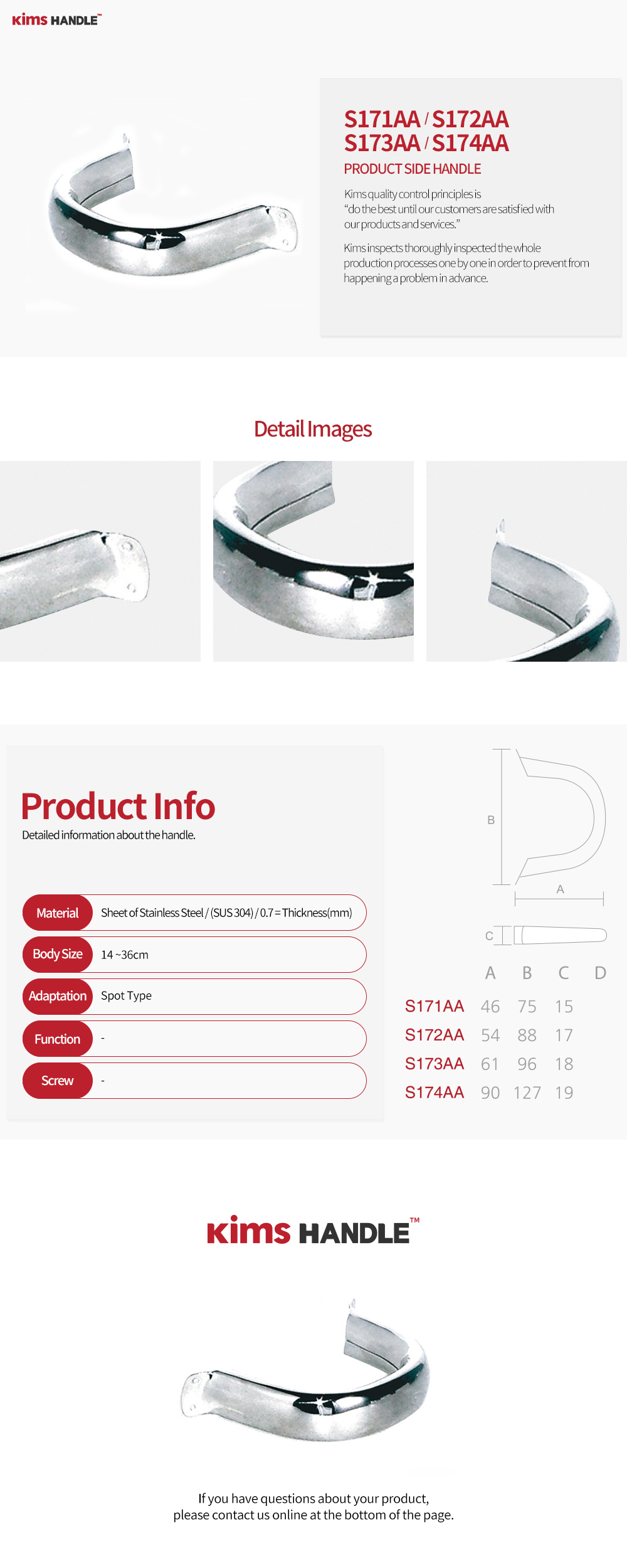 S171AA - (A) : 46 x (B) : 75 x (C) : 15 / S172AA - (A) : 54 x (B) : 88 x (C) : 17 / S173AA - (A) : 61 x (B) : 96 x (C) : 18 / S174AA - (A) : 91 x (B) : 127 x (C) : 19