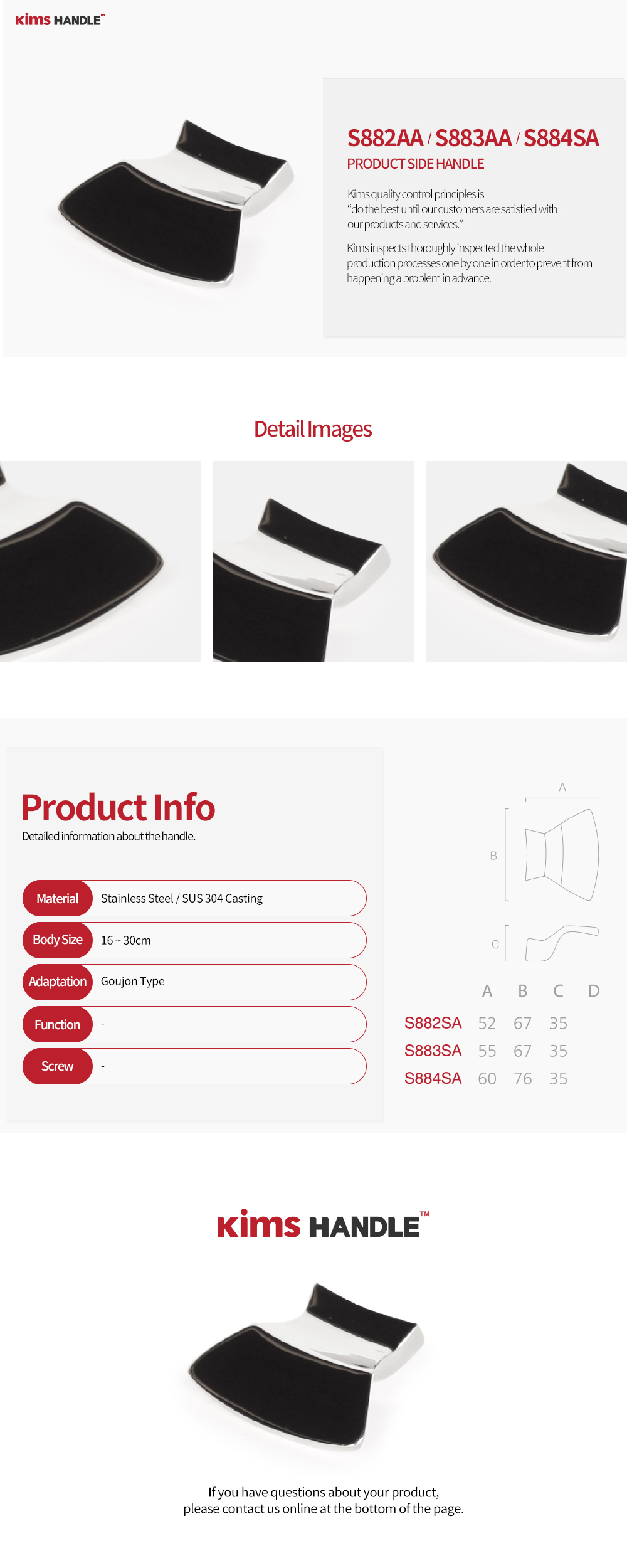 S882AA - (A) : 52 x (B) : 67 x (C) : 35 / S883AA - (A) : 55 x (B) : 67 x (C) : 35 / S884AA - (A) : 60 x (B) : 76 x (C) : 35