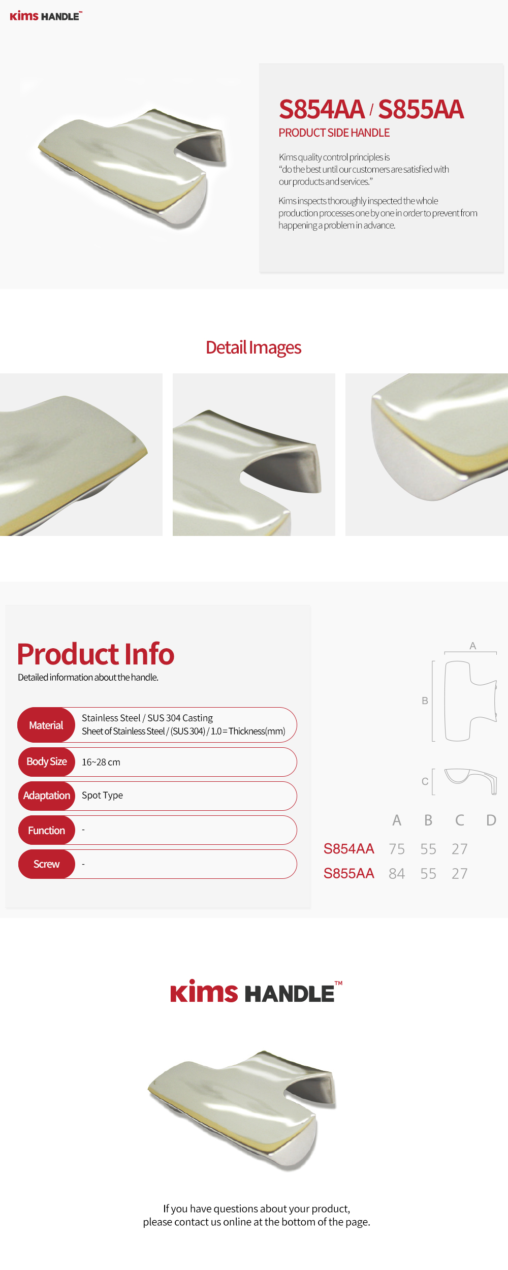 S854AA - (A) : 75 x (B) : 55 x (C) : 27 / S855AA - (A) : 84 x (B) : 55 x (C) : 27
