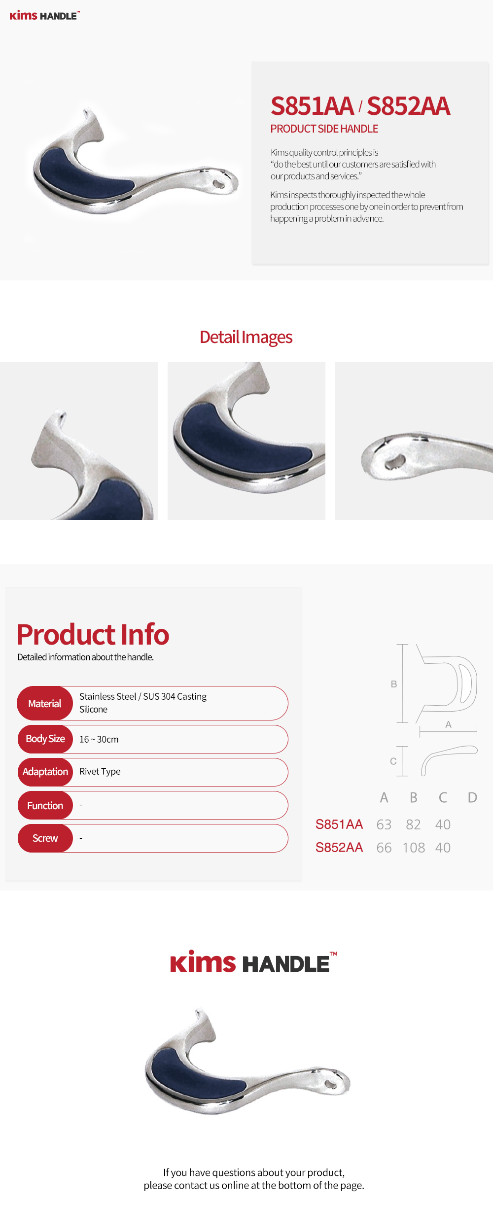 S851AA - (A) : 63 x (B) : 82 x (C) : 40 / S852AA - (A) : 66 x (B) : 108 x (C) : 40