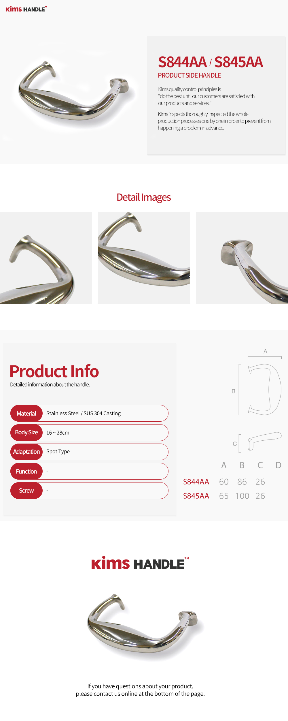 S844AA - (A) : 60 x (B) : 86 x (C) : 26 / S845AA - (A) : 65 x (B) : 100 x (C) : 26
