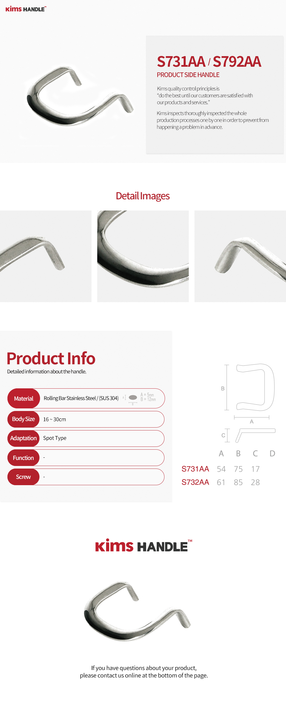 S731AA - (A) : 54 x (B) : 75 x (C) : 17 / S732AA - (A) : 61 x (B) : 85 x (C) : 28