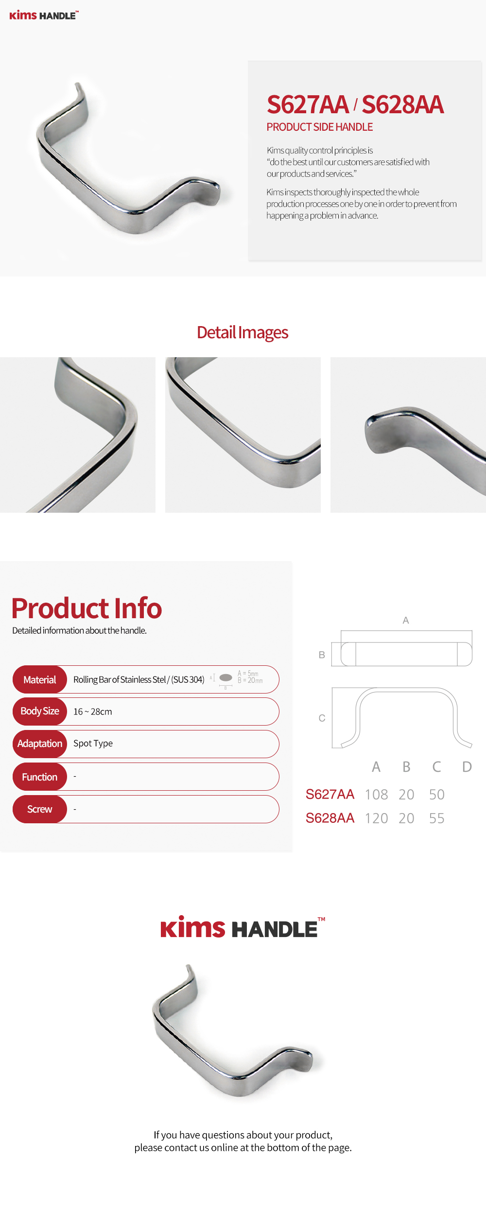 S627AA - (A) : 108 x (B) : 20 x (C) : 50 / S628AA - (A) : 120 x (B) : 20 x (C) : 55