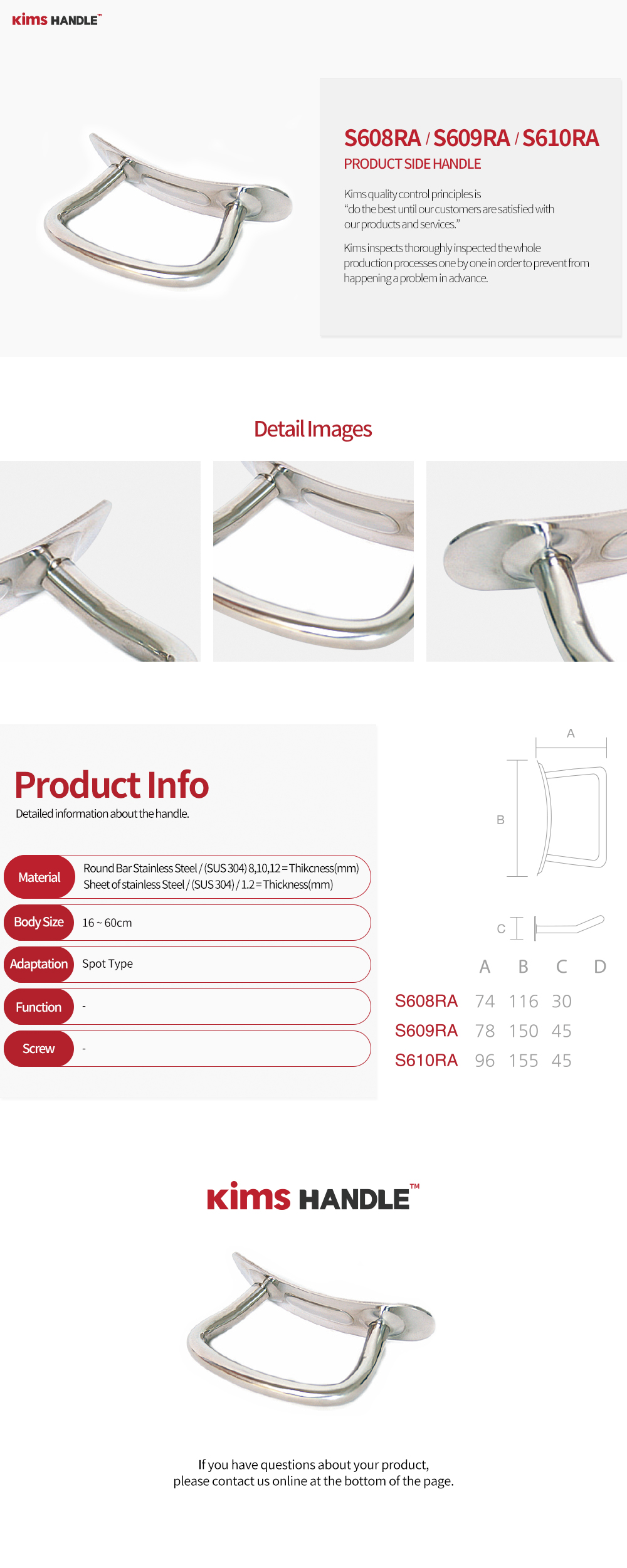 S608RA - (A) : 74 x (B) : 116 x (C) : 30 / S609RA - (A) : 78 x (B) : 150 x (C) : 45 / S610RA - (A) : 96 x (B) : 155 x (C) : 45